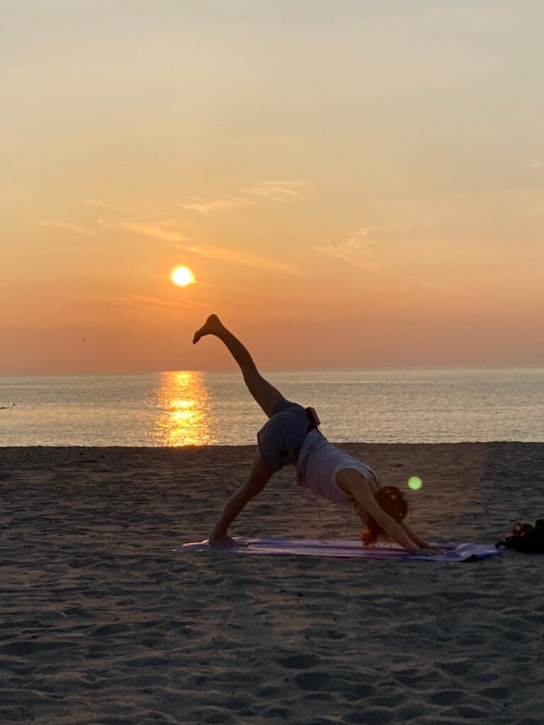 ナチュラルビューティーなスマイルで多くの人を魅了している桑原先生とのヨガ、そしてビーチクリーンで、海も自分もきれいに☆