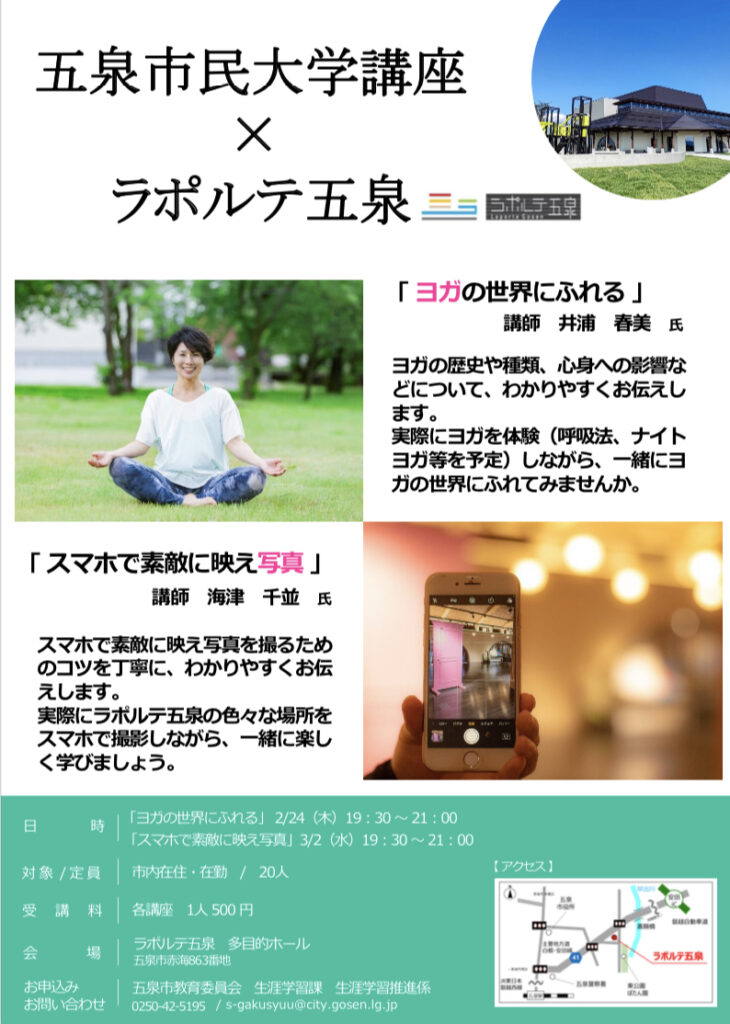 オシャレな新人気スポットとなったラポルテ五泉を会場に、ヨガ講座が開催されます!