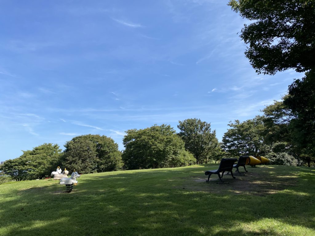 このトイレを過ぎて、自動販売機の前を左斜め前方に、少し遊具が見えて来ます↓