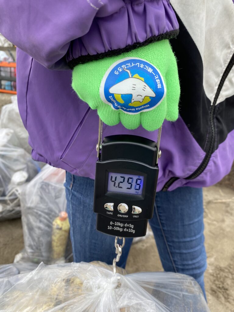 子供たちも元気に広いビーチをきれいにしてくれて、最後に集めたゴミはみんなでヨイショと重さを計ってみました!